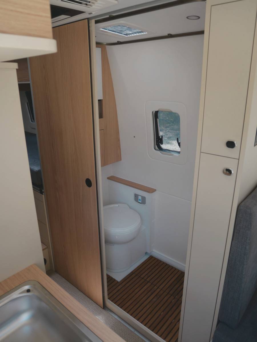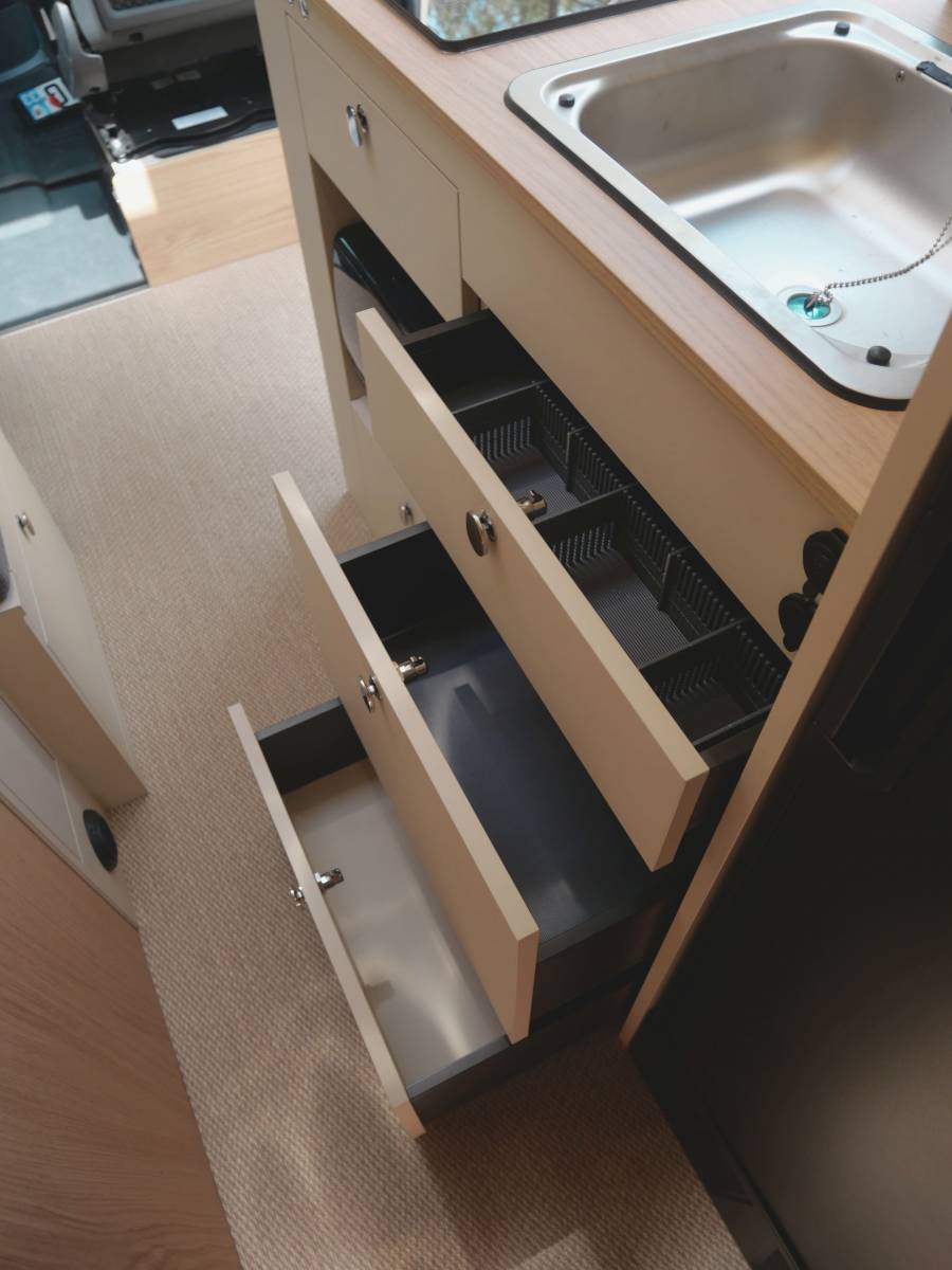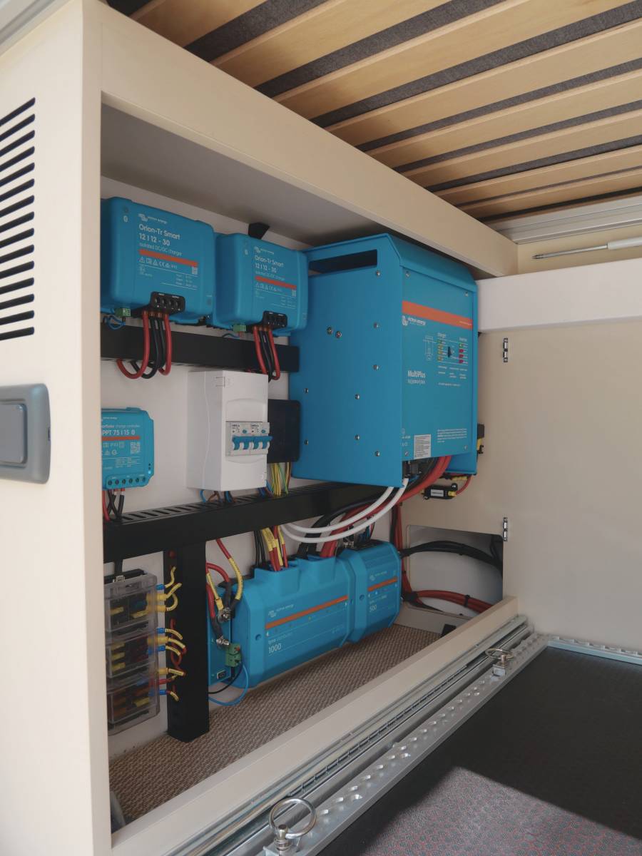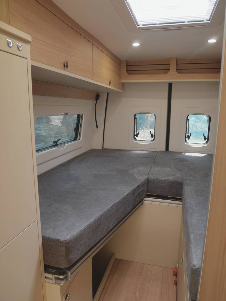 Nous avons eu le plaisir de travailler sur ce projet de diligence sur mesure avec Martine et Bertrand, un charmant couple originaire de Noirmoutier. Passionnés par le voyage et la camping car depuis toujours, ils ont fait confiance à notre équipe pour réaliser le véhicule de leur rêve sur base de Mercedes-Benz Sprinter 4x4 long (7 mètres). Cet agencement est bien différent de ce que nous proposons habituellement. Il offre un maximum de confort, de rangements et présente la particularité du couchage longitudinal sur le principe des lits jumeaux. La dinette se situe à l'avant grâce aux sièges pivotants et une banquette une place fabriquée sur mesure. Un sanitaire généreux avec WC chimique, douche et lavabo vient dans la continuité de la banquette. En face, nous retrouvons l'espace cuisine avec une plaque un feu induction, un évier et un grand réfrigérateur de 138 L. L'agencement intègre de nombreux rangements hauts ainsi qu'une généreuse penderie. A la demande de nos clients, nous avons installé deux télévisions indépendantes, l'une côté couchage, l'autre côté salon.