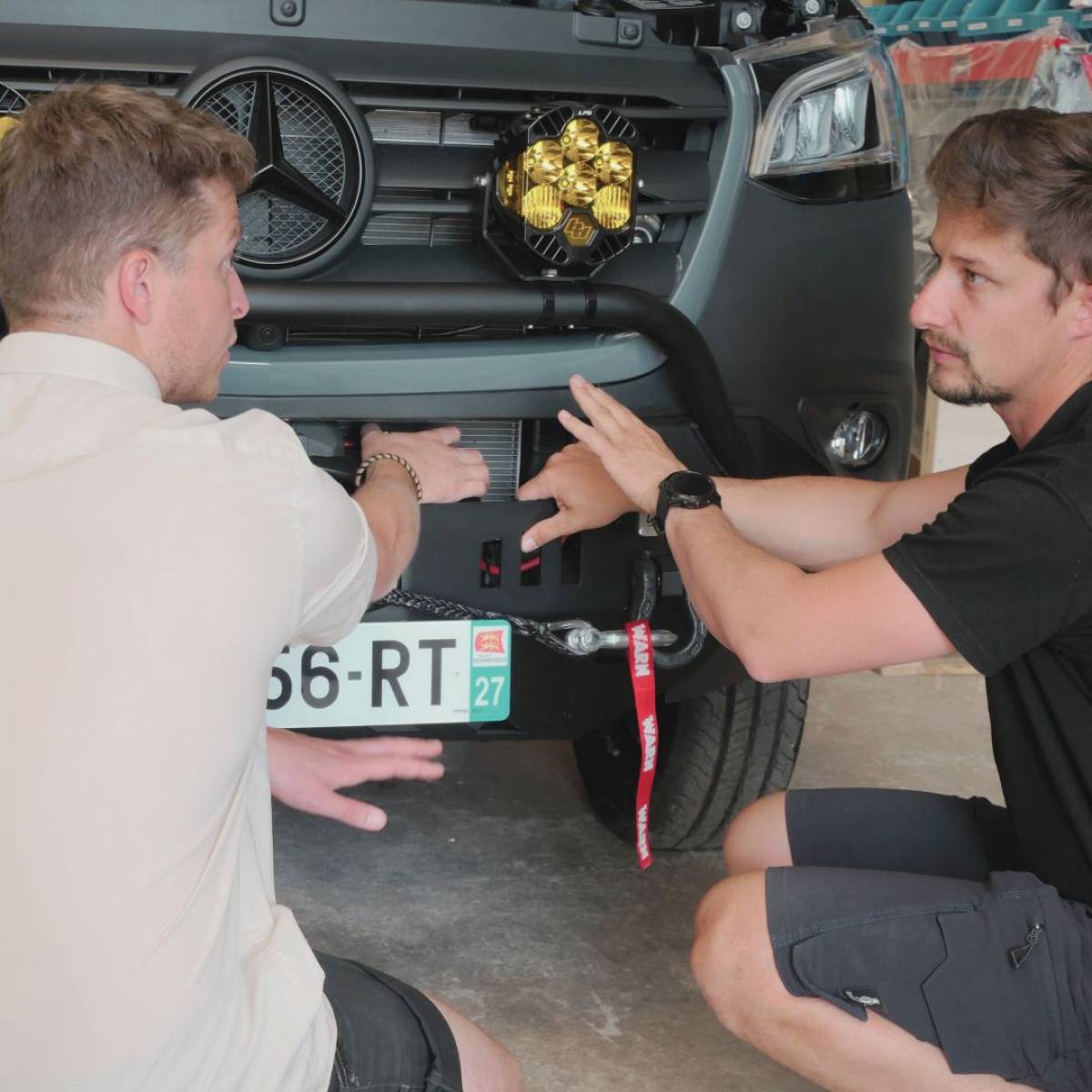 Mercedes-Benz Etoile Pro à Bruges qui réalise avec nos clients la prise en main du porteur à notre atelier. Cette étape dure entre 1 et 2 heures et permet de mettre en place l'ensemble de la connectivité du Sprinter pour nos clients.