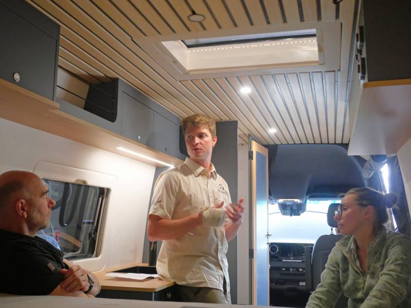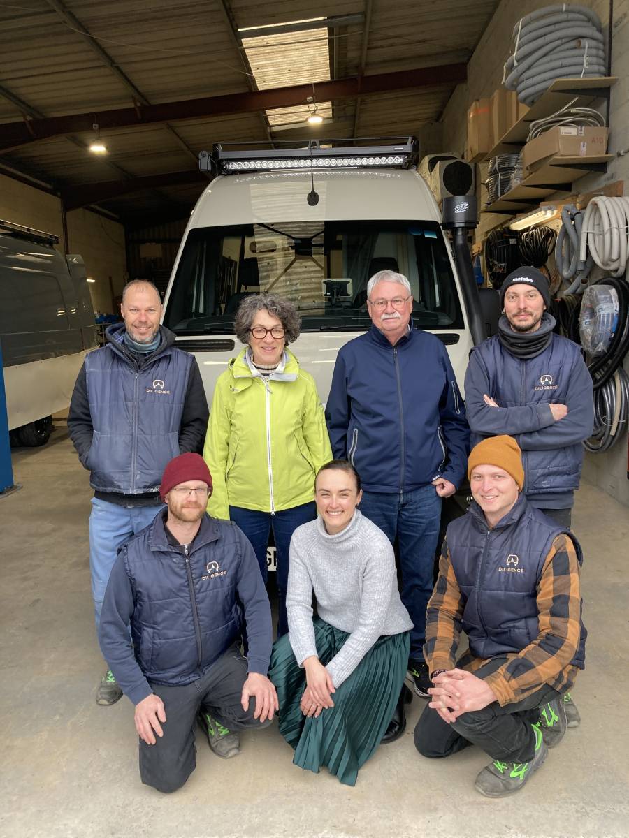prise en main de la diligence. Il va passer en revue l'ensemble des équipements présents en prenant le soin d'expliquer leur fonctionnement et les entretiens à réaliser. L'électricité, le chauffage, le chauffe-eau, les réservoirs d'eau, les équipements tout-terrain, c'est toute la prise en main de la diligence qui se déroulera