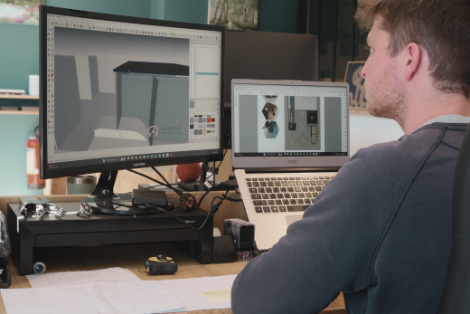 La rédaction du cahier des charges démarre lors de la phase de conception, environ trois mois avant l’arrivée du porteur. Antony réalise la première version à partir du devis validé et conçoit, en parallèle, les premières implantations en modélisation 3D. Plusieurs versions peuvent voir le jour, le temps d’affiner l’agencement en fonction de votre usage et des contraintes spécifiques, comme le transport de vélos ou de motos.